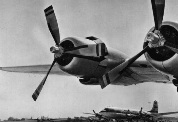 The ramp at Bulltofta Airport with DC 3 (commuterflight for Copenhagen) and two DC 6.