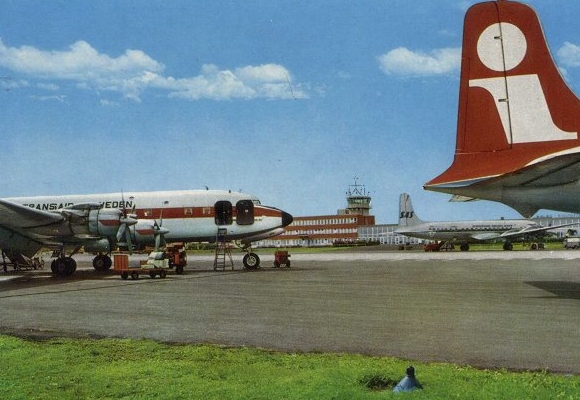 Postcard from Bulltofta with Transair DC 6 SE-BDM and Linjeflyg Convair Metropolitan. Photo: Giovanni Trimboli